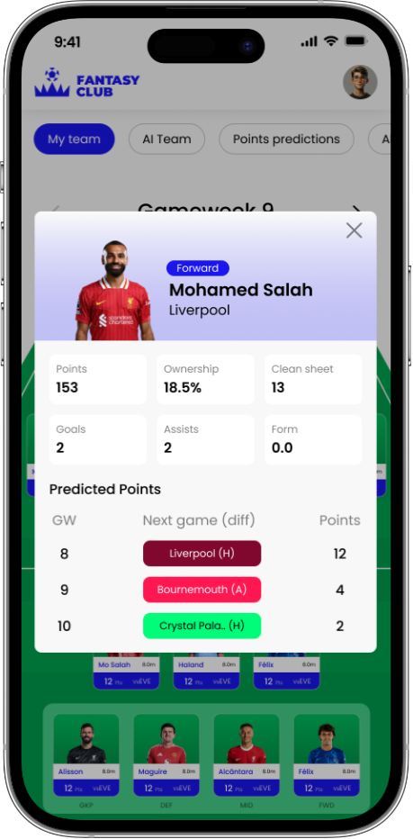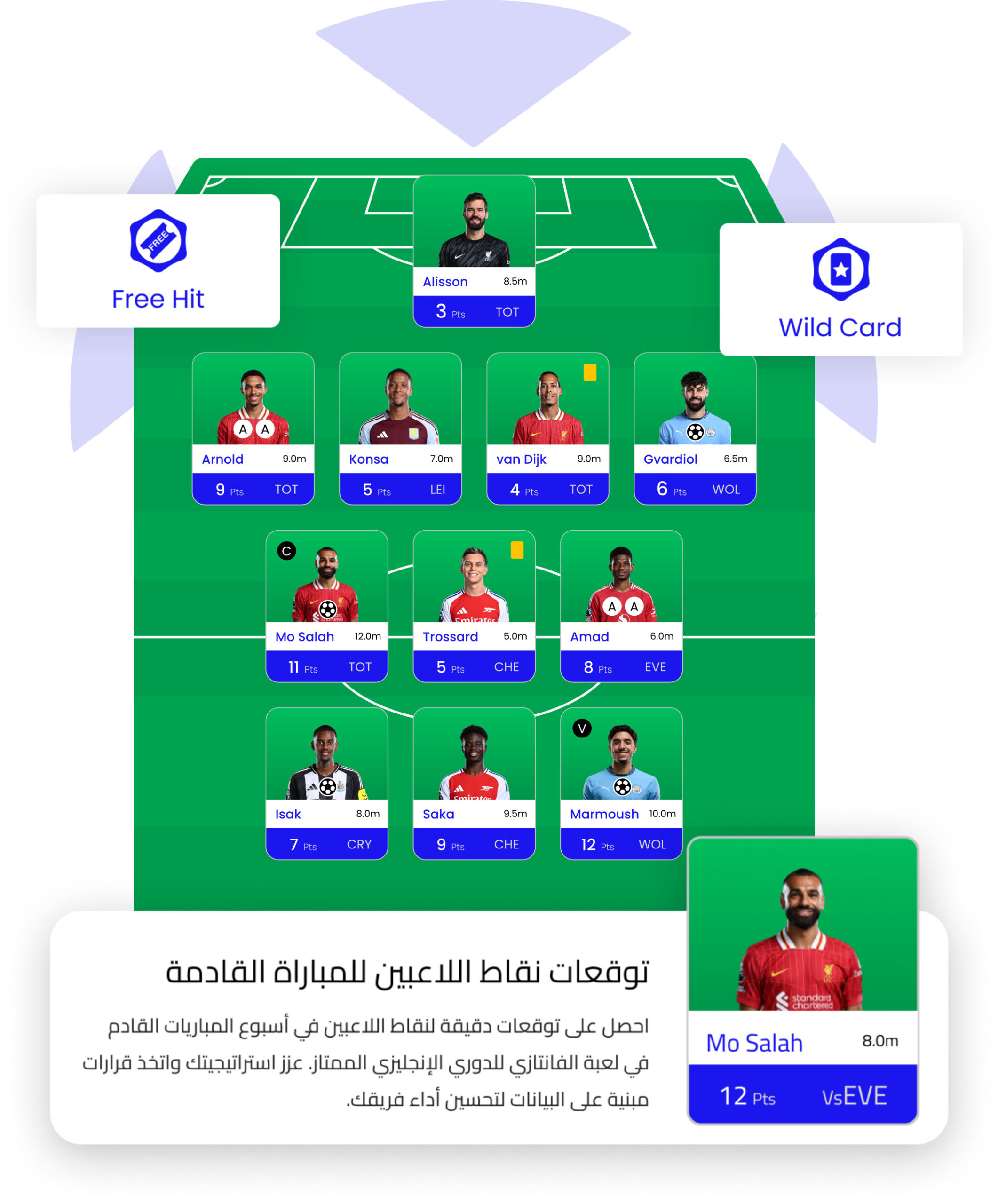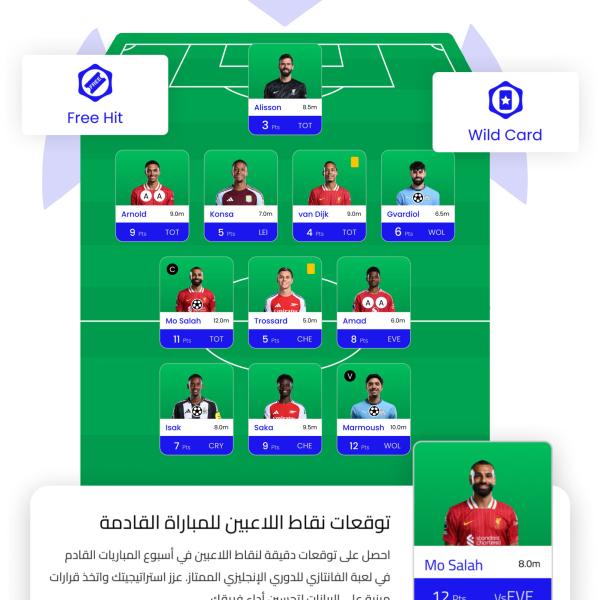 اختيار التشكيلة الأمثل لفانتزي الدوري الإنجليزي لكل أسبوع باستخدام الذكاء الاصطناعي، لتحقيق فرق ناجحة ونقاط أعلى. تابع تنبؤات نقاط اللاعبين قبل انطلاق المباريات، واكتشف اقتراحات البيع والشراء الذكية وفق ميزانيتك. خطط فريقك بسهولة مع توقعات التشكيلات الأساسية، واحصل على أفضل القرارات لبناء فريق قوي ومتميز في كل جولة.